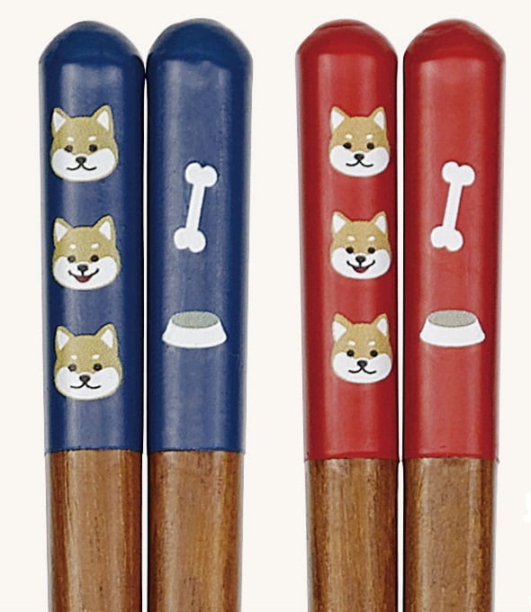 ユーモアある柴犬とお皿のイラスト。愛着がわくかわいいお箸。食洗機対応。